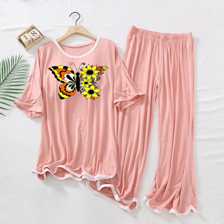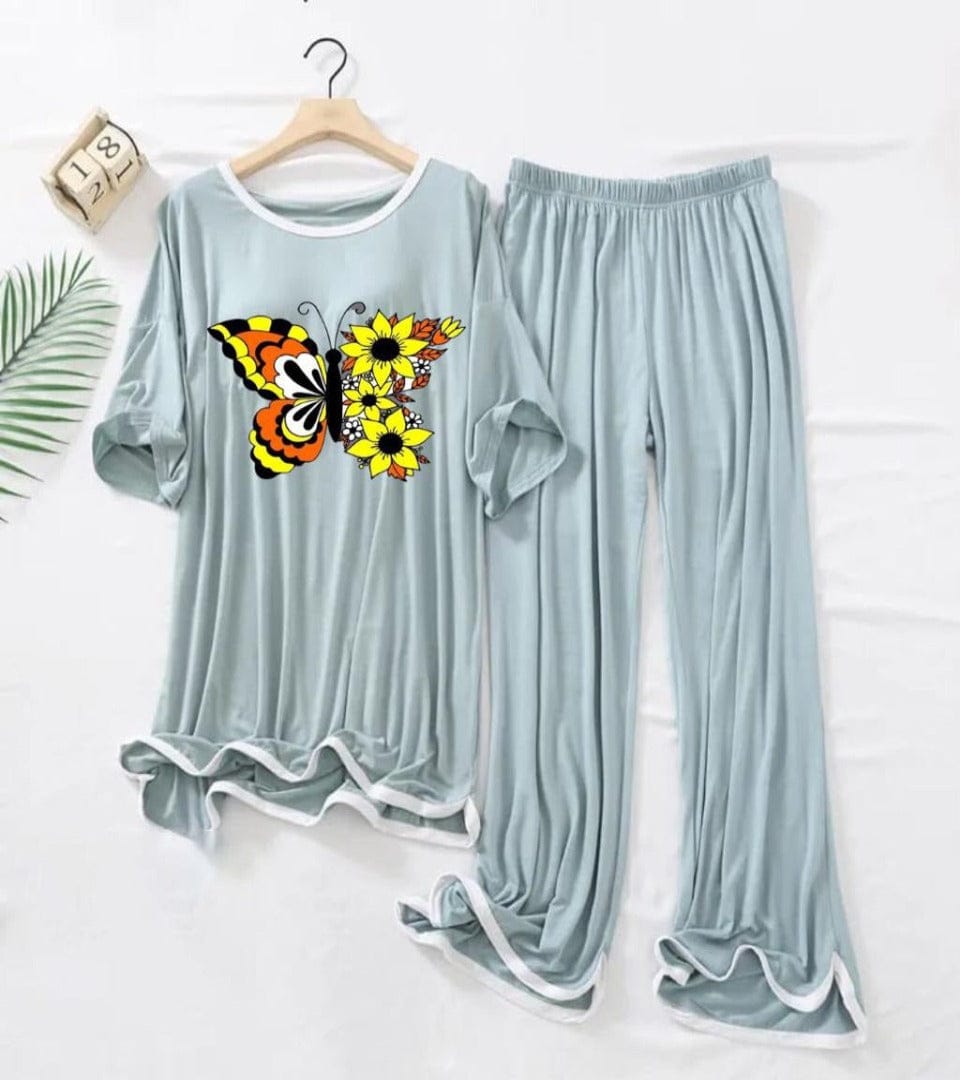 COLORED BUTTERFLY PRINTED TRENDY LOUNGE WEAR FOR WOMEN