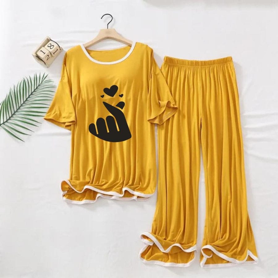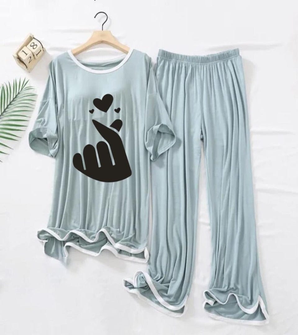 HAND HEART LOVE PRINTED TRENDY LOUNGE WEAR FOR WOMEN