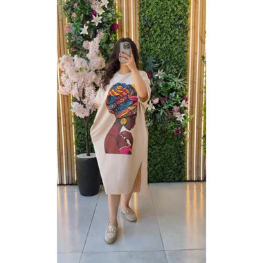 Long Loose Printed Top Tee